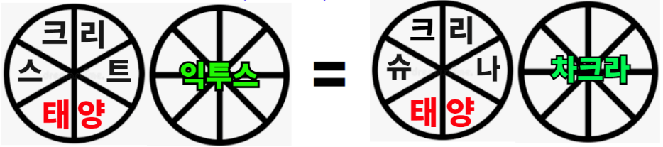 인더스 문명 돌라비라(Dholavira) 유적에서 발견된 힌두교의 창조주 비슈누의 아바타 크리슈나의 이니셜 태양 수레바퀴와 소아시아 에페소스에서 발견된 기독교의 구원자 귀신의 왕 바알세불 제우스의 아바타 크리스트의 이니셜 태양 수레바퀴가 100% 완벽하게 똑같다.(krishna and christ same)