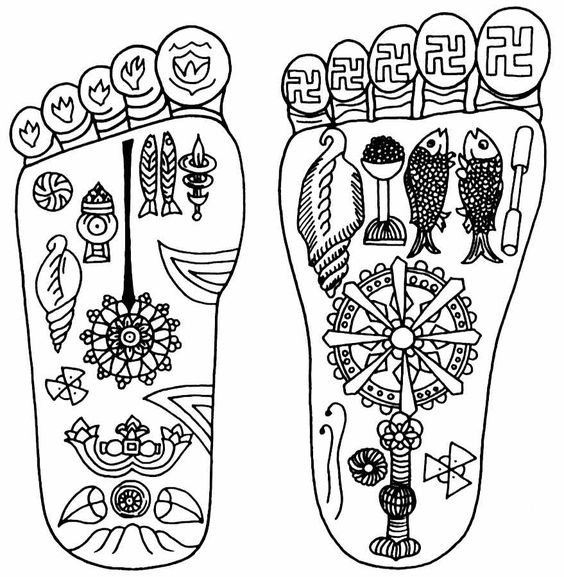 자이나교 상징주의에서는 24명의 티르탄카라(영적 스승이자 구원자) 중 일곱 번째인 수파르쉬바나타를 상징하며, 불교 상징주의에서는 부처(석가모니)의 Icon of Buddha's footprints(불교 부처의 발자국 아이콘) 상서로운 발자국(Buddha footprint)을 상징한다.